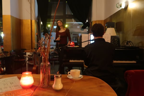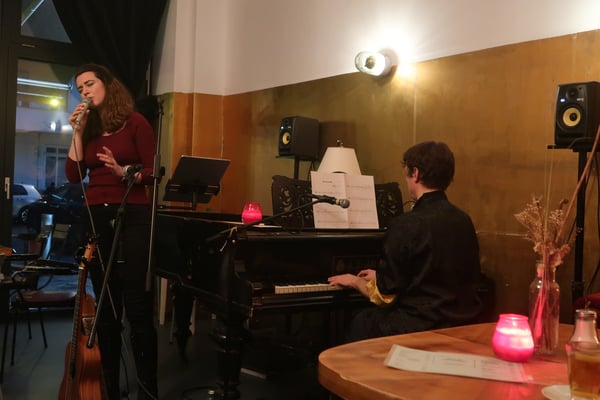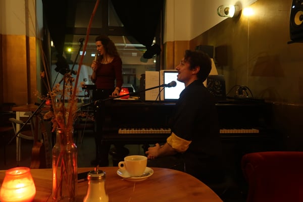 With Pinar Tatlikazan on voice/ukulele and Sacha Hladiy on piano/voice the Duo is interpreting the jazz standards and classic oldies in an intimate way, harmonising in a unique communication in the realm of Sacha's waterlike harmonies and Pinar's dreamy but strong versatile voice. On selected songs the Duo also sing together and exchanges roles to Pinar on the Baritone Ukulele and Sacha on Voice like in the French original of Windmills of Your Mind.